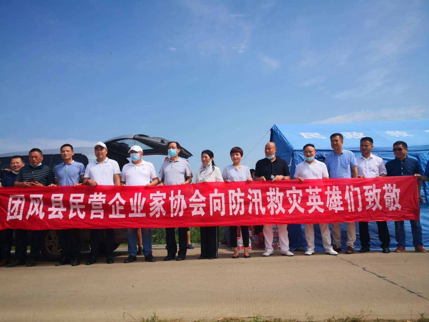 7月22日,光谷藍焰團風(fēng)公司領(lǐng)導(dǎo)一行,深入到江堤等防汛抗洪一線,向烈日下堅守崗位的干部群眾送去了價值兩千元礦泉水、方便面等物品,同時帶去真誠的問候。